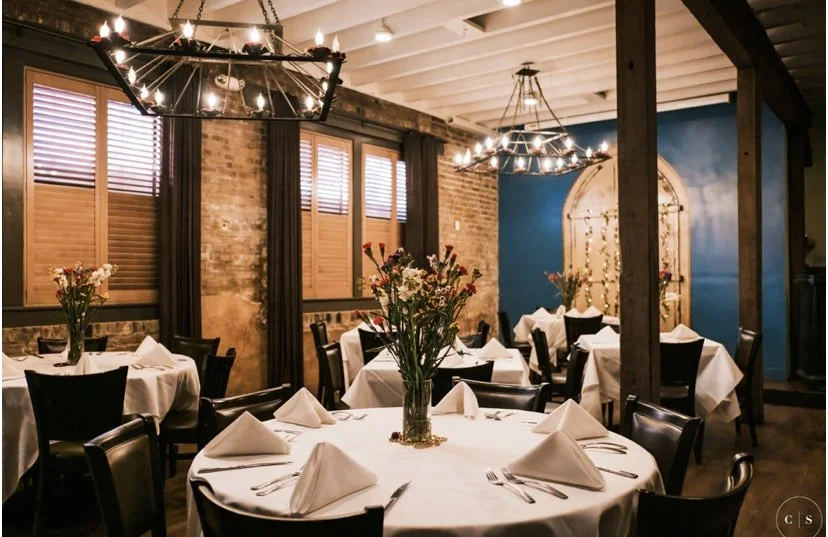Located in the back of the restaurant, the Armory Room boasts a quiet space away from the hustle and bustle of the main restaurant. With exposed brick, wood beams, and original armory room door, the space offers a unique Charleston charm with rustic touches.